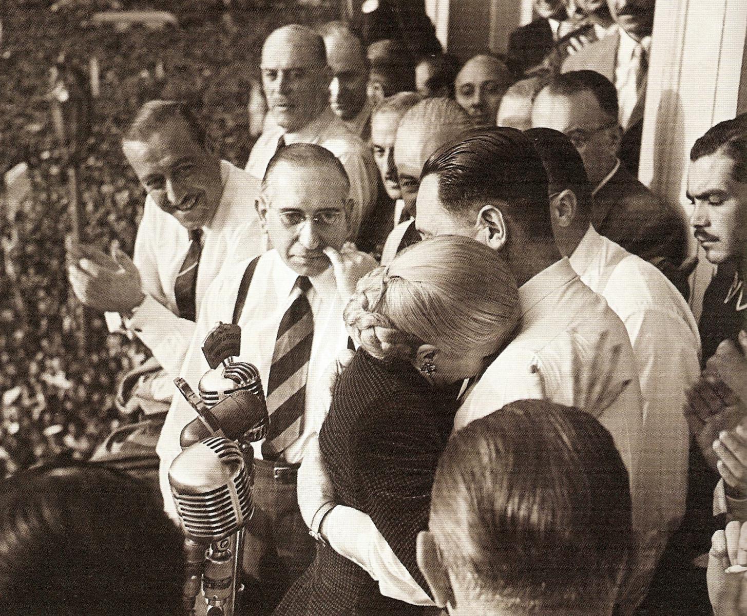 Y a ustedes, descamisados de mi patria y a todos los que me escuchan, los estrecho muy, pero muy fuerte, junto a mi corazón. […]